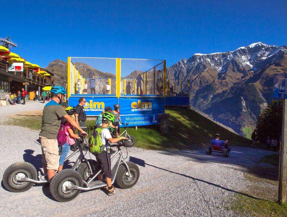 Mountaincart heisst das Funsportgerät, dass man bei den Sportbahnen Elm mieten kann. Eine Mischung zwischen Gokart und Rodeln. Gefahren wird auf der 4km langen Trottinettstrecke. Die Fahrt startet bei der Bergstation Ämpächli und endet bei der Talstation der Sportbahnen Elm.